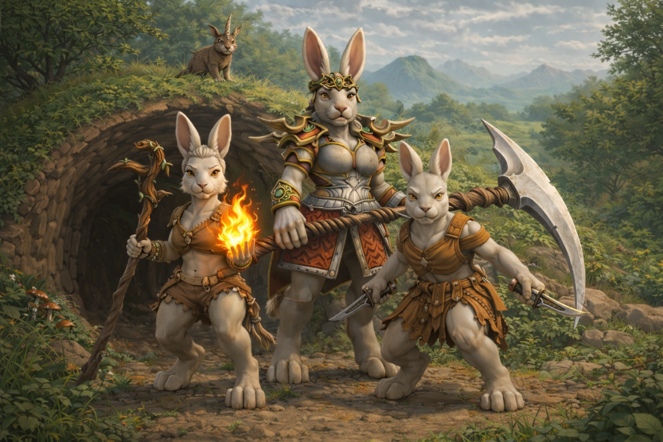 The Rabbit Beastfolk, known as the The Stillpath Watch, endure through foresight, community, and quiet resolve. Where others meet the world with dominance, endurance, or cunning, Rabbits persist by knowing when to act and when to vanish. Small and swift, their keen senses read danger long before it arrives, and their movements are never wasted. A Rabbit’s stillness is not fear, but preparation taking form.