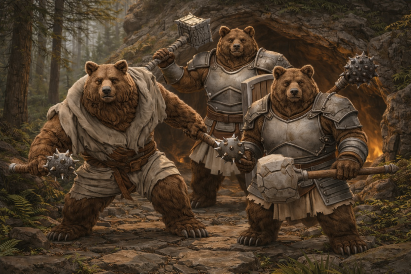 The Bear Beastfolk, who call themselves the Hearthbound, are creatures forged in endurance, memory, and unyielding resolve. They do not seek dominion or movement, but stand to hold and guard what has been claimed, remembering what was lost, and enduring what must not break. Their legends teach that the world is preserved not by rulers or power, but by those who refuse to yield when all else demands surrender. When a Bear stands unmoving, it is not hesitation, but judgment taking form.