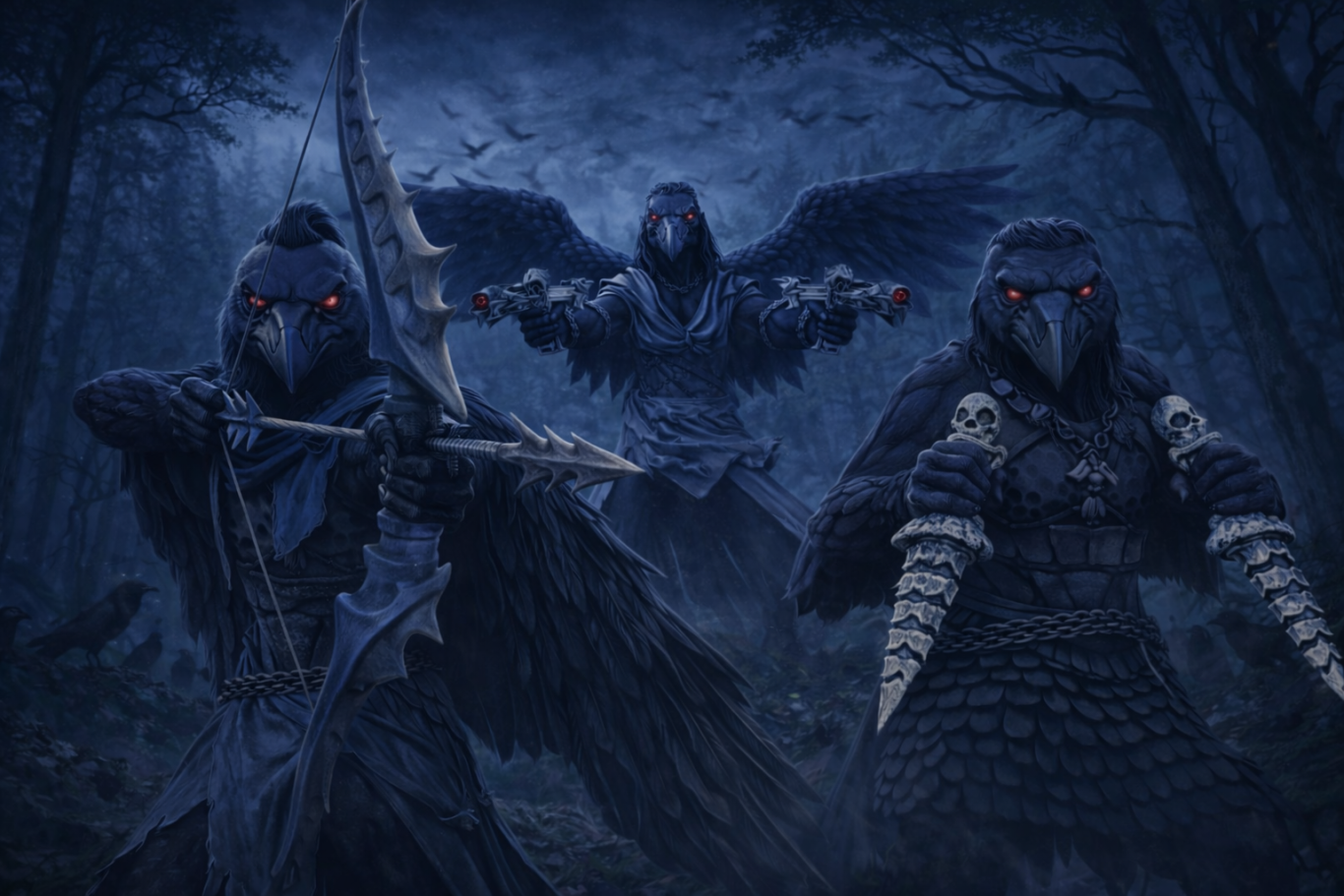 Bound by the Ledger of Feathers, the Omenbound serve as chroniclers, interpreters, and witnesses to history’s turning points. In Murder-Circles, omens are debated and interpreted collectively, for prophecy is not owned, only shaped through understanding. Other Beastfolk seek Ravens to legitimize rule, sanctify endings, or give weight to catastrophe. They revere the Black Horizon, where all futures converge into memory, and fear death without witness above all else. Yet interpretation is a burden, some Ravens fall silent as Mute-Wings, recording without meaning, while others become False Prophets, twisting omens to serve their ambition, grim reminders that to shape memory is to risk shaping ruin.
